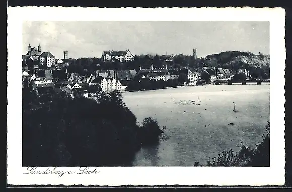 AK Landsberg a. Lech, Ortsansicht übers Wasser