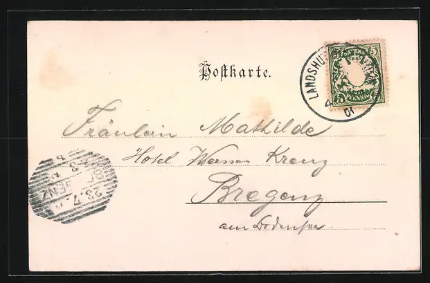 gelaufen 1901, Eckknicke re. oben, guter Zustand