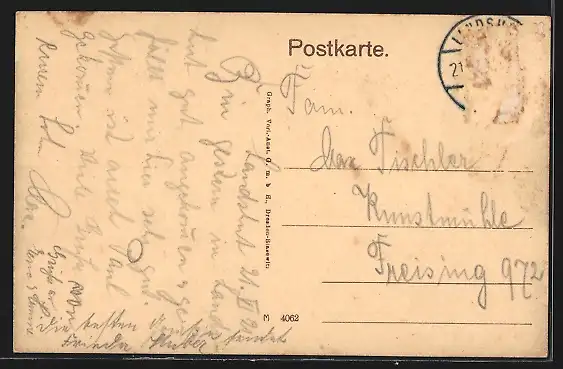 alte Ansichtskarte, gelaufen 1921, Briefmarke entfernt, rückseitig Oberflächenschaden, guter Zustand