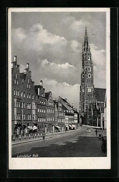 AK Landshut /Ndb., Strassenpartie mit Geschäften am Dom