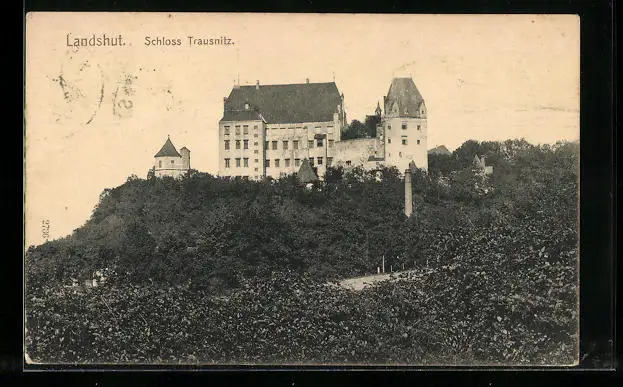 Personenbezogene Daten auf der Rückseite der Karte wurden durch blauen Textmarker unkenntlich gemacht. Die blauen Stellen sind auf die Vorderseite durchgeweicht und wirken sich negativ auf das Postkartenfoto aus