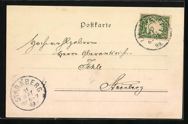 alte Ansichtskarte, gelaufen 1899, guter Zustand