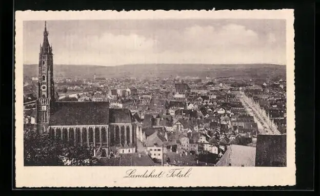 AK Landshut, Totalansicht mit Kirche und Strassenpartie