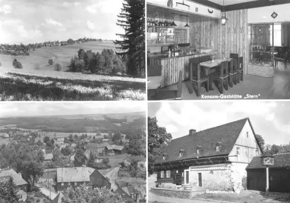 Ansichtskarte Landwüst Vogtl. vier Abb. - Totale, Konsum-Gaststätte "Zum Stern", Teilansicht, Bauernmuseum Erhaltung I-II ungelaufen Druckvermerk: 1972 Herstellungsland: DDR Verlag: Dick-Foto-Verlag, 9934 Erlbach i. V. - 698/9
