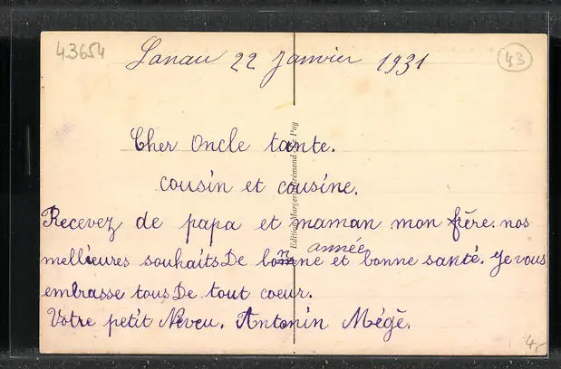 ungelaufen, Rückseite beschrieben 1931, guter Zustand