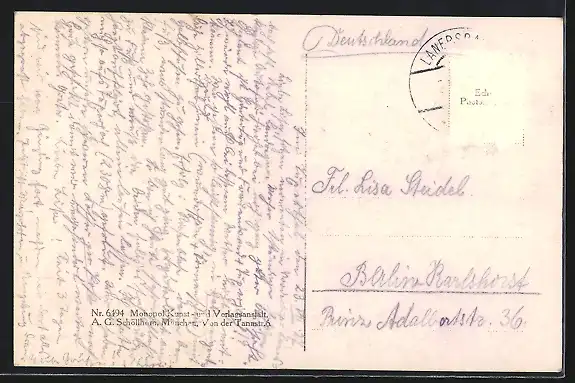 alte Ansichtskarte, gelaufen, Briefmarke entfernt, rückseitig Oberflächenschaden, guter Zustand