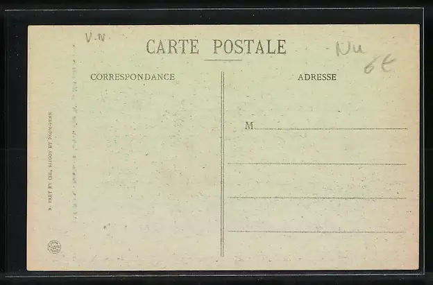 Personenbezogene Daten auf der Rückseite der Karte wurden durch blauen Textmarker unkenntlich gemacht. Die blauen Stellen sind auf die Vorderseite durchgeweicht und wirken sich negativ auf das Postkartenfoto aus