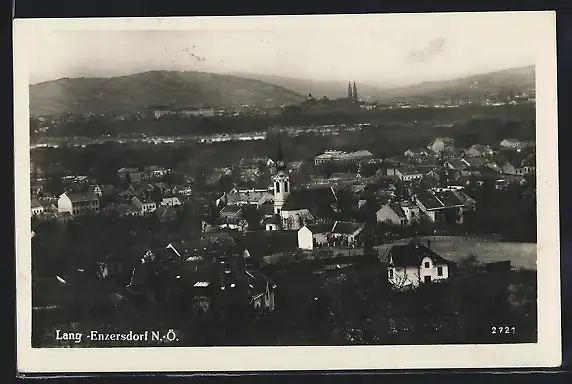 AK Lang-Enzersdorf /N.-Ö., Ortsansicht mit Kirche aus der Vogelschau