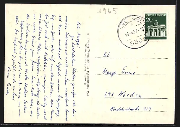 alte Ansichtskarte, gelaufen 1967, guter Zustand