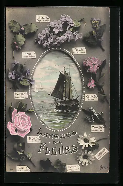 AK Langage des Fleurs: Pensee Amour Eternet, Blumensprache