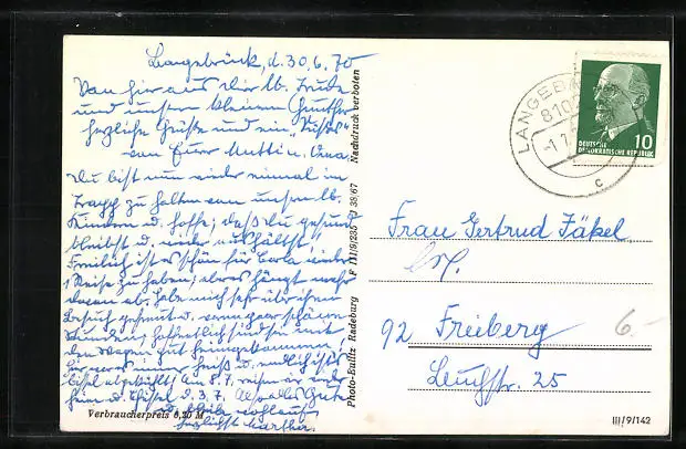 alte Ansichtskarte, gelaufen 1970, guter Zustand