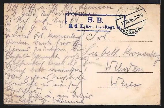 gelaufen 1916, Eckknicke li. unten, Stempelspur, guter Zustand