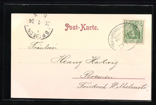 alte Ansichtskarte, gelaufen 1904, guter Zustand