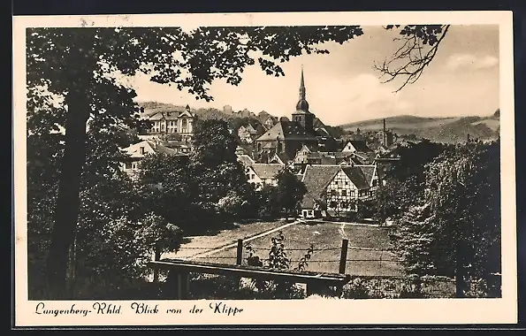AK Langenberg /Rhld., Blick von der Klippe mit Kirche