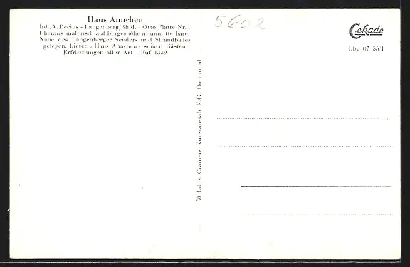 AK Langenberg / Rhld., Sender, Haus Annchen, Jugendherberge