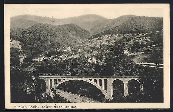 AK Langenbrand / Murgtal, Teilansicht und Brücke mit Murgtalbahn