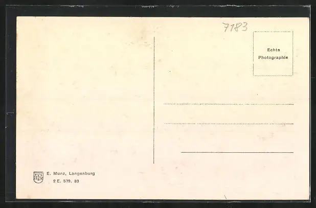 Personenbezogene Daten auf der Rückseite der Karte wurden durch blauen Textmarker unkenntlich gemacht. Die blauen Stellen sind auf die Vorderseite durchgeweicht und wirken sich negativ auf das Postkartenfoto aus