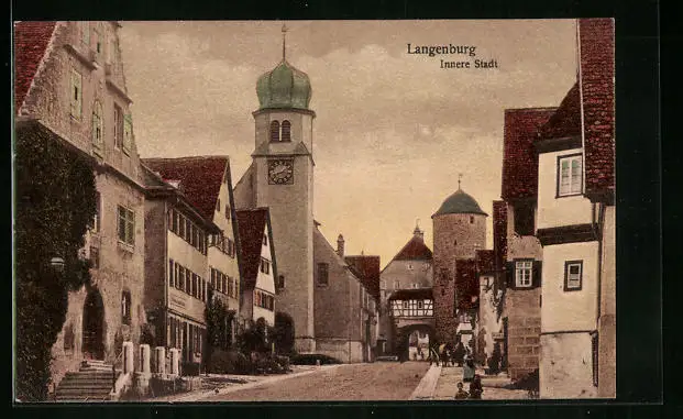 AK Langenburg, Strasse Innere Stadt mit Uhrenturm