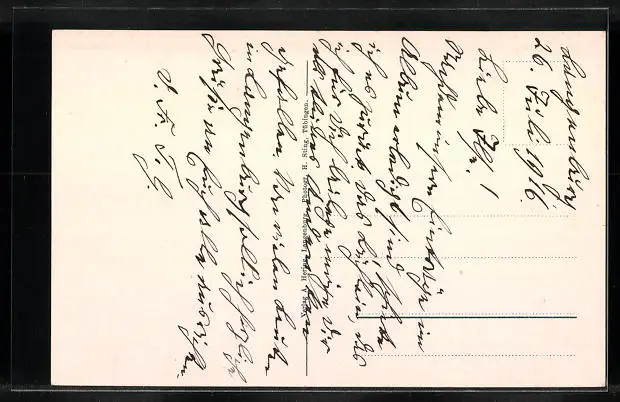 Personenbezogene Daten auf der Rückseite der Karte wurden durch blauen Textmarker unkenntlich gemacht. Die blauen Stellen sind auf die Vorderseite durchgeweicht und wirken sich negativ auf das Postkartenfoto aus