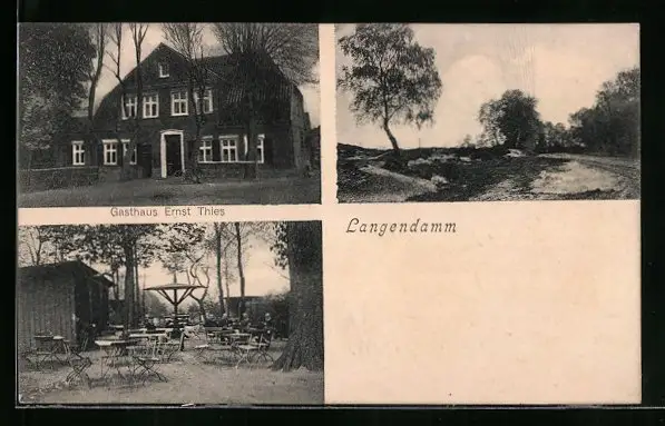 AK Langendamm, Gasthaus von Ernst Thies mit Terrasse