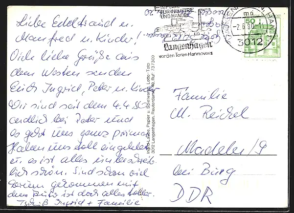 alte Ansichtskarte, gelaufen 1980, Eckknick re. oben, Stempelspur, guter Zustand