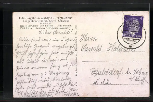 AK Langenhennersdorf /Sächs. Schweiz, Erholungsheim Waldgut Bergfrieden