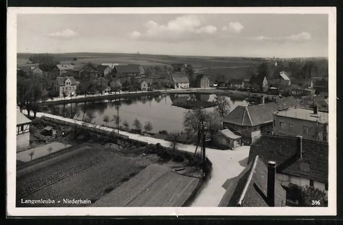 AK Langenleuba-Niederhain, Ortsansicht mit Teich