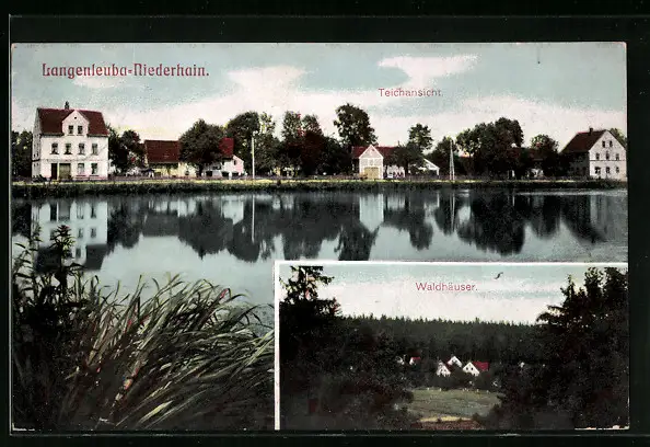 AK Langenleuba-Niederhain, Waldhäuser, Teichansicht
