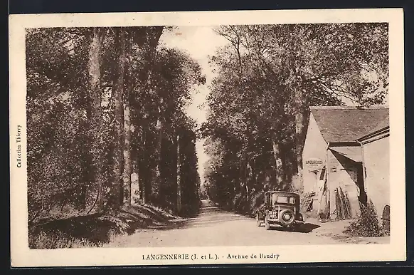 AK Langennerie, Avenue de Baudry avec voiture ancienne et bâtiments