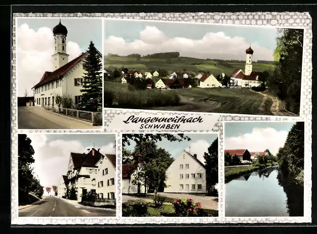 AK Langenneufnach /Schwaben, Ortsansicht mit Kirche, Partie am Fluss, Strassenpartie