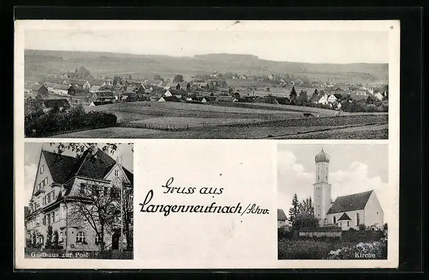 AK Langenneufnach b. Schwaben, Gesamtansicht mit Gasthaus zur Post
