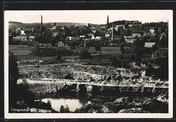 AK Langenöls /Liegnitz, Ortsansicht mit Wasserpartie