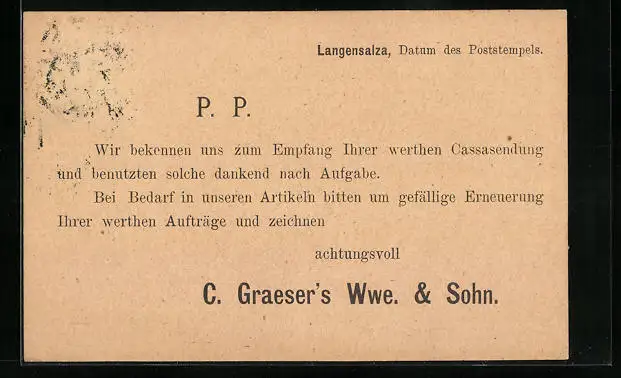 AK Langensalza, C. Graeser`s Wwe. & Sohn