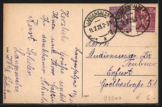 Weitere Ansichtskarten zur Postleitzahl 99947