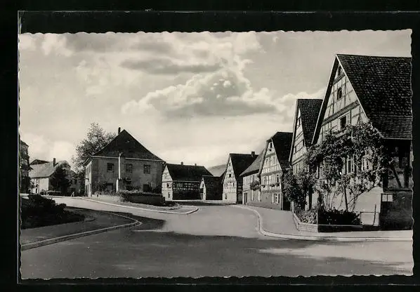 AK Langensteinbach, Strassenpartie mit Fachwerkhäusern