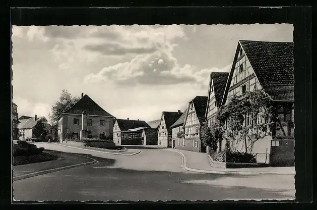 AK Langensteinbach, Strassenpartie mit Fachwerkhäusern