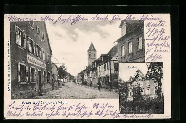 AK Langensteinbach, Strassenpartie mit Gasthaus zum goldenen Ochsen, Forsthaus