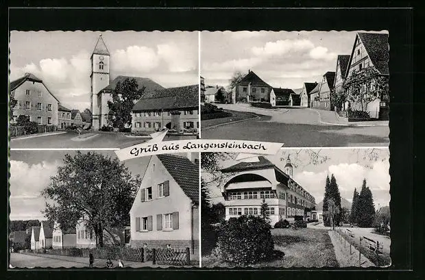 AK Langensteinbach, Strassenpartie mit Kirche, Wohnhäuser