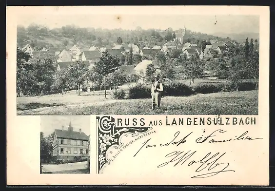 AK Langensulzbach, Ortsansicht mit Bauer auf dem Feld
