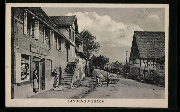 AK Langensulzbach, Strassenpartie mit Ladengeschäft