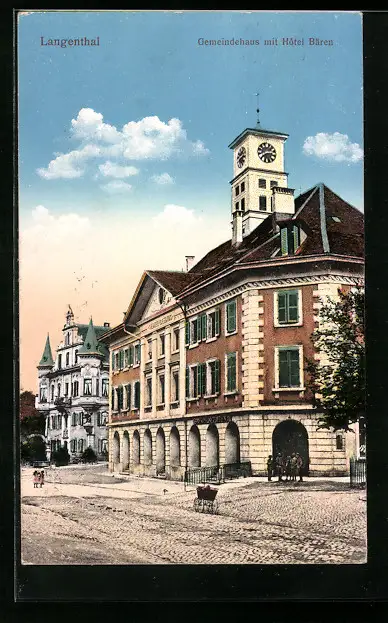 AK Langenthal, Gemeindehaus mit Hotel Bären