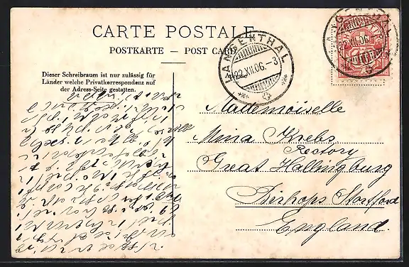 alte Ansichtskarte, gelaufen 1906, guter Zustand