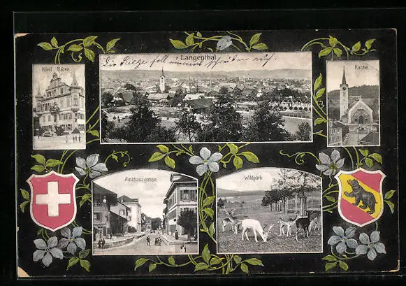 AK Langenthal, Hotel Bären, Kirche, Wildpark, Wappen