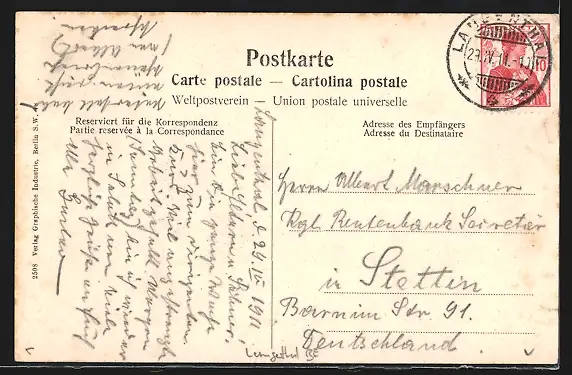 alte Ansichtskarte, gelaufen 1911, Einriss li. unten, guter Zustand