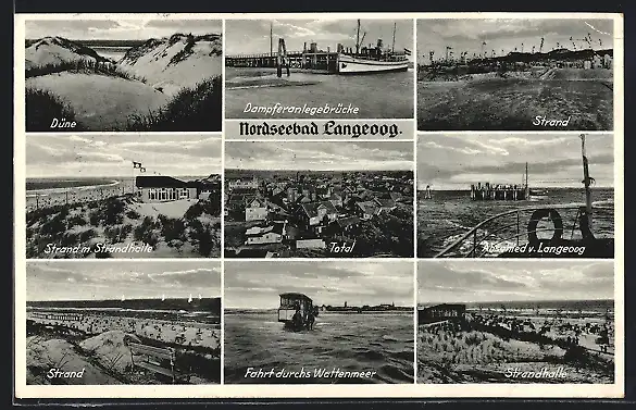 AK Langeoog, Dampferanlegebrücke, Strand, Düne
