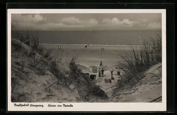 AK Langeoog / Nordseebad, Dünen am Strande mit flaggen