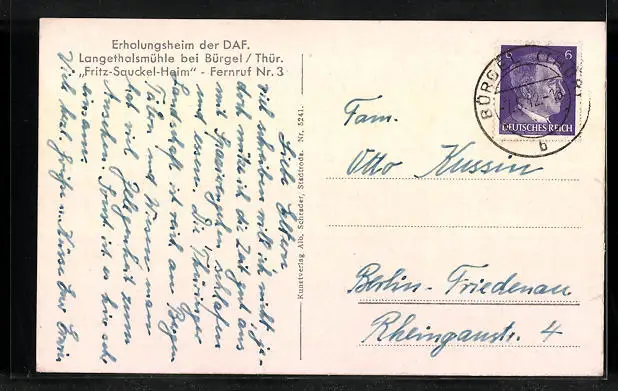 AK Langethalsmühle bei Bürgel /Thür., Erholungsheim der DAF