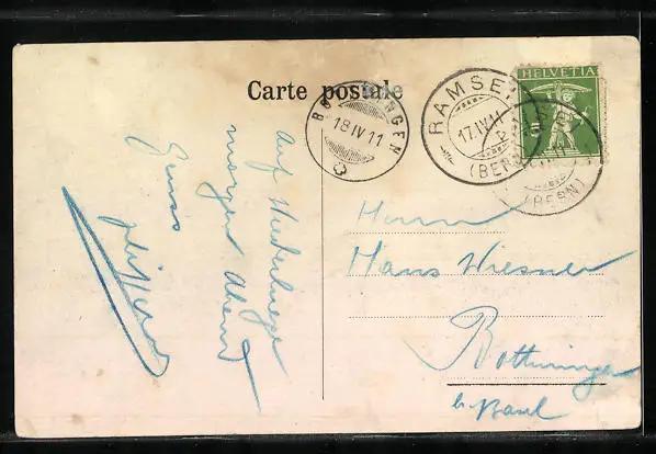 alte Ansichtskarte, gelaufen 1911, Abriebspur, Einriss oben mittig, rückseitig Oberflächenschaden, guter Zustand