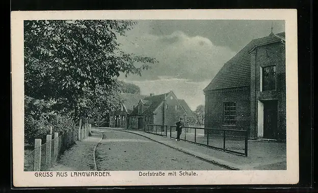 AK Langwarden, Dorfstrasse mit Schule