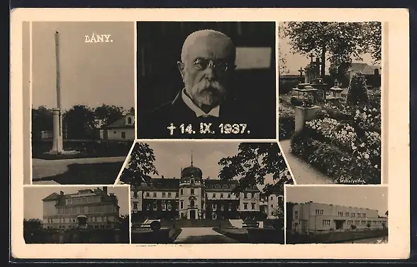 AK Lány, Masaryk, Schloss, Friedhof, Denkmal